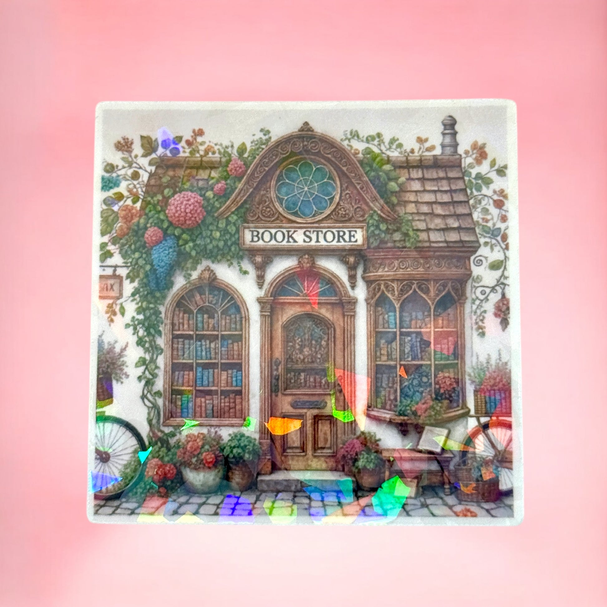 Step into a charming, cozy world with our holographic Whimsical Bookstore Sticker! 🏡🌸 Perfect for bibliophiles, dreamers, and anyone enchanted by quaint, magical bookshops. Decorate your notebooks, laptops, bottles, and more with a touch of literary wonder. 🌷🚲