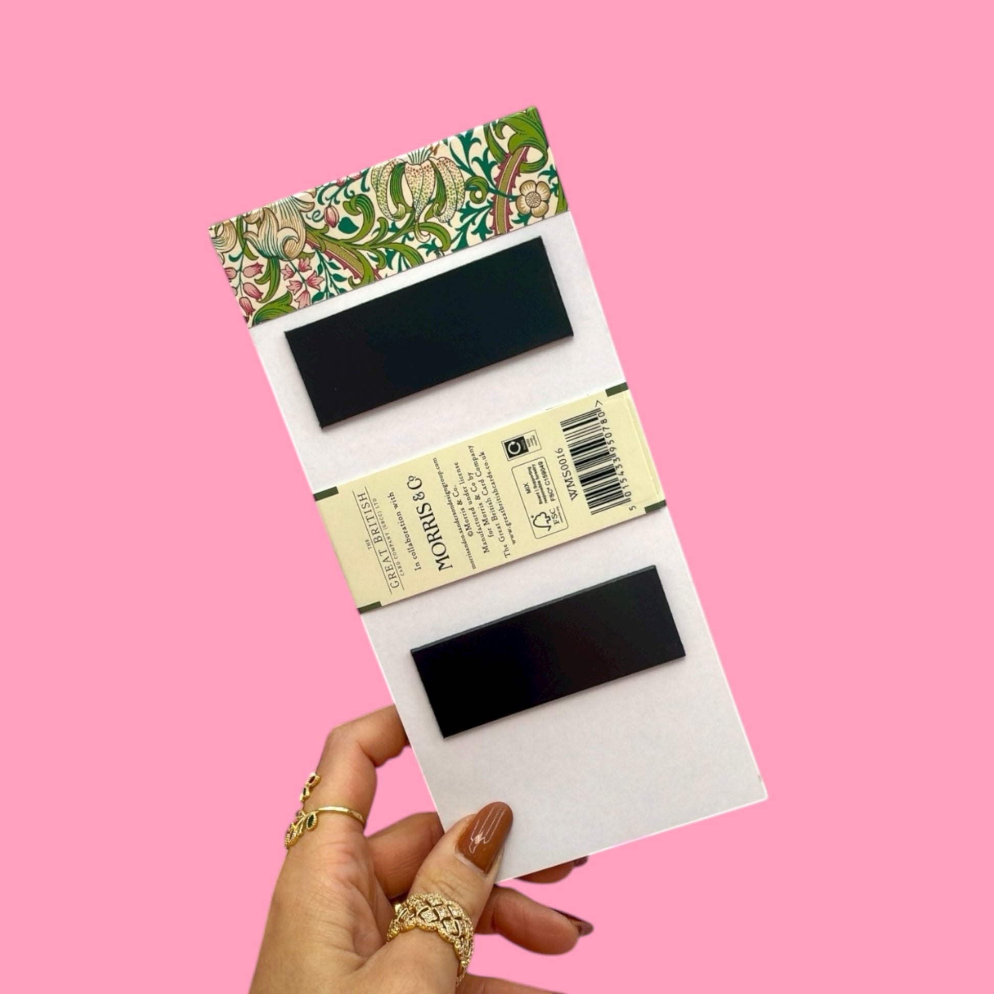 Stay organised in style with this elegant Morris & Co. Magnetic List Pad. Featuring a classic floral design, this pad includes 55 tear-off sheets and a strong magnet on the back so you can easily attach it to your fridge or workspace. Perfect for shopping lists, reminders, or daily notes.