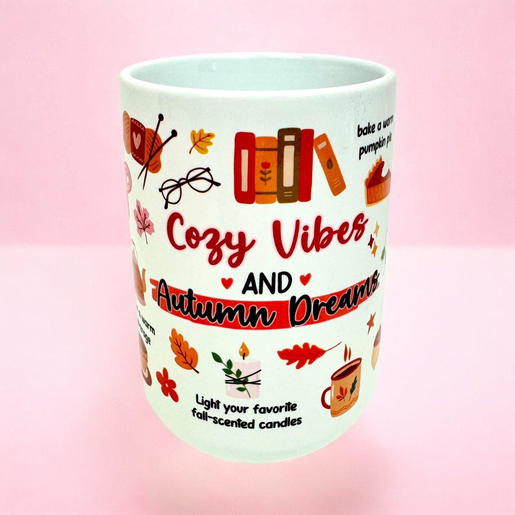 🍂 Cozy Vibes & Autumn Dreams – 15oz Mug ☕🎃