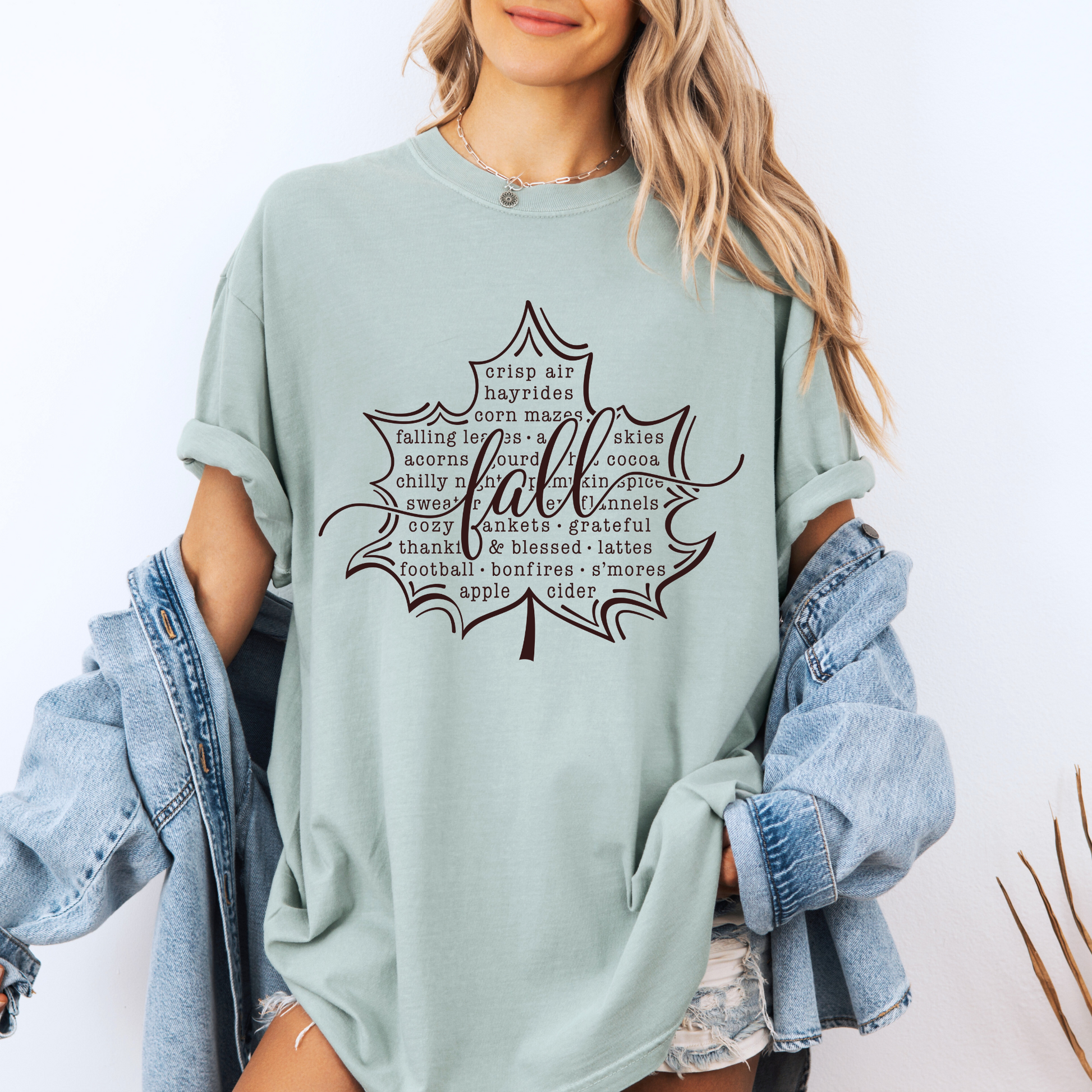 🍂 Fall Words Leaf Tee 🍁☕100% Organic cotton