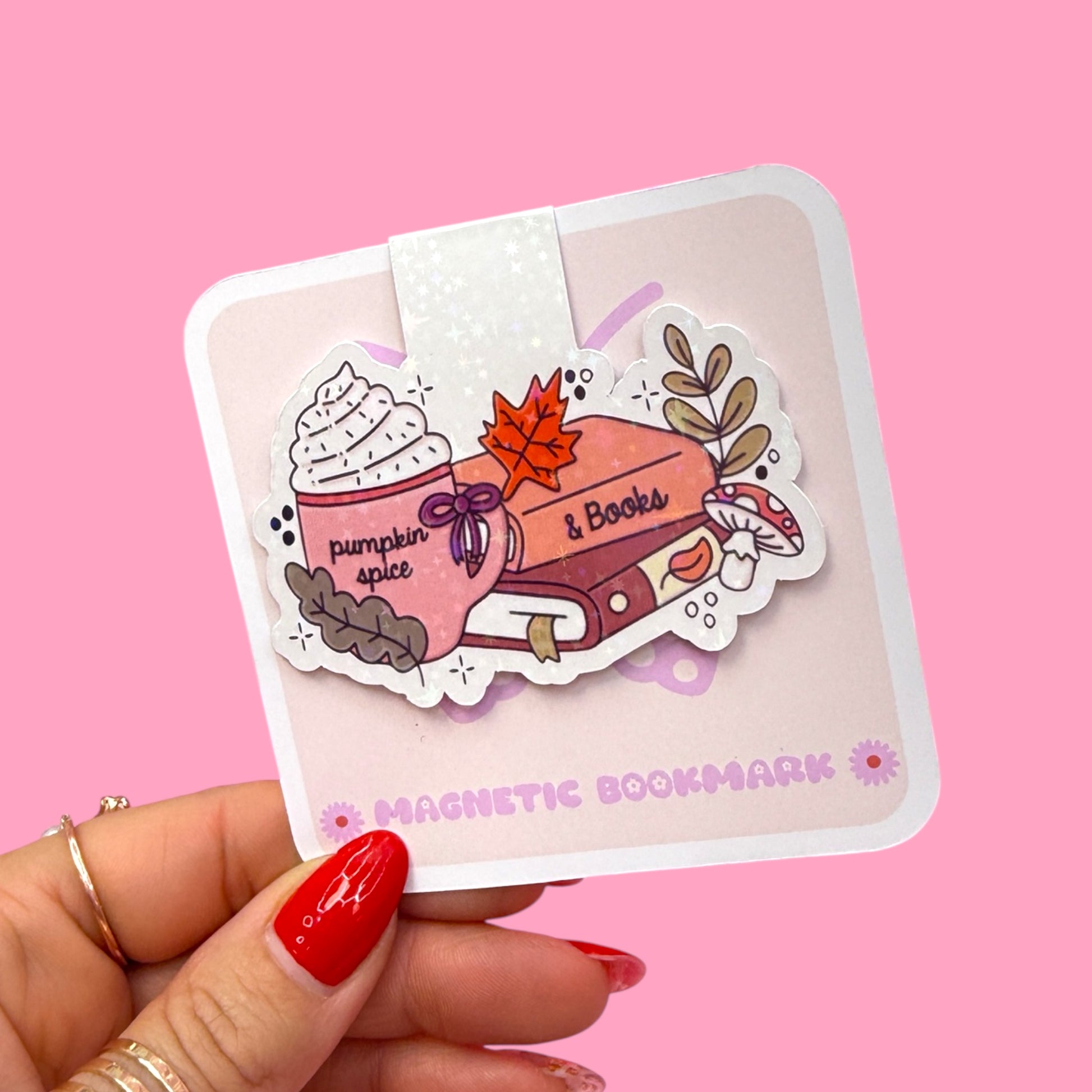 🍂 Pumpkin Spice & Books – Magnetic Bookmark 📚✨