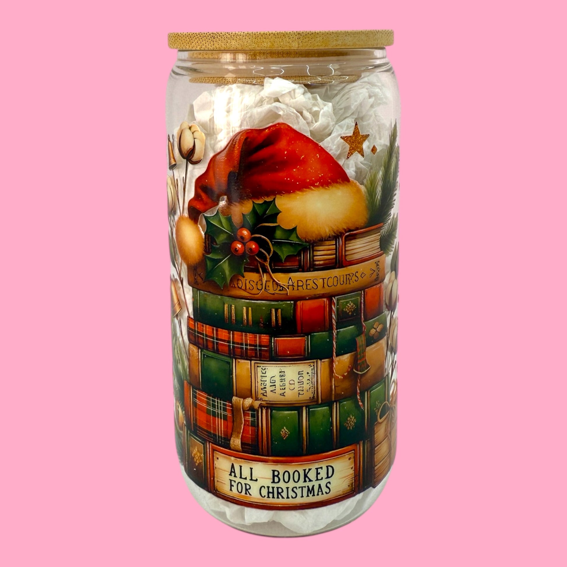 🎄📚 All Booked for Christmas 16oz Glass Cup ☕✨