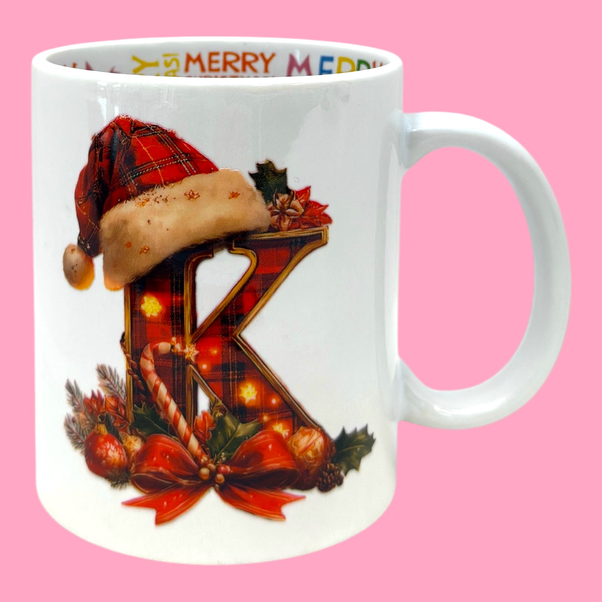 Add a personal touch to your festive drinks with this beautiful 11oz mug. Each mug features a stunning tartan-style initial decorated with a Santa hat, candy canes, and Christmas ornaments. The inside is filled with colorful “Merry Christmas” prints, making it extra special for the holiday season.