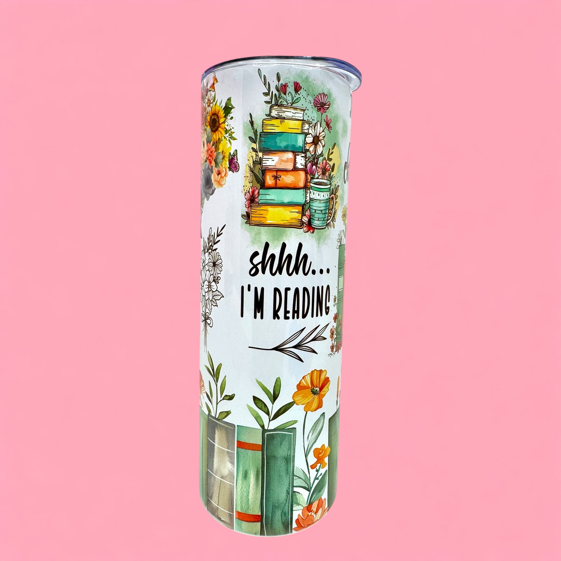 Calling all bookworms! This 20oz tumbler is the perfect reading companion, wrapped in cozy book stacks, wildflowers, and literary quotes like “Shhh… I’m reading” and “Just one more chapter” 🛋️📖 Whether you’re curled up on the couch or off on an adventure, this tumbler keeps your drink at the perfect temperature while you dive into your next story. ✨