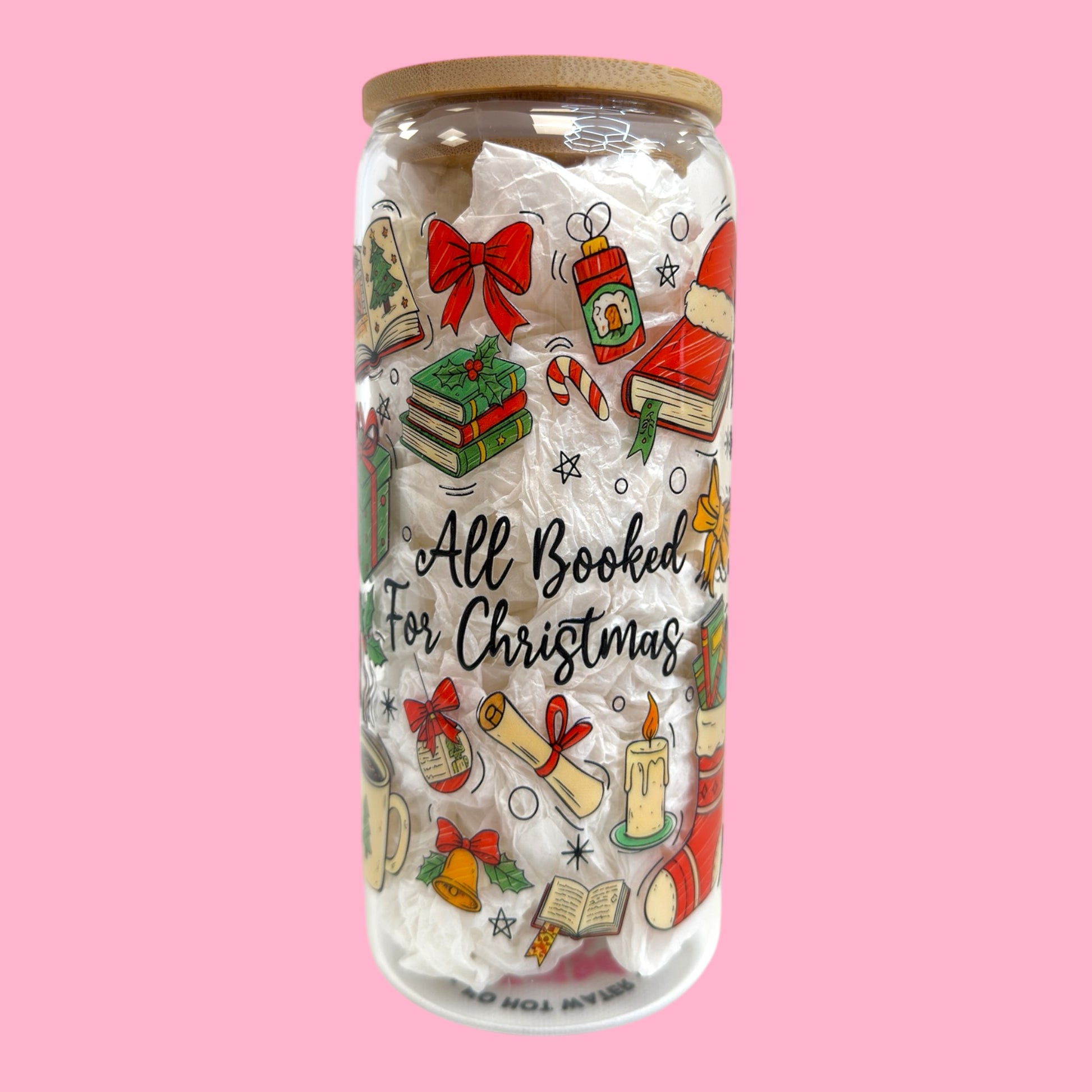 All Booked for Christmas 20oz Glass Cup 📚🎄☕️