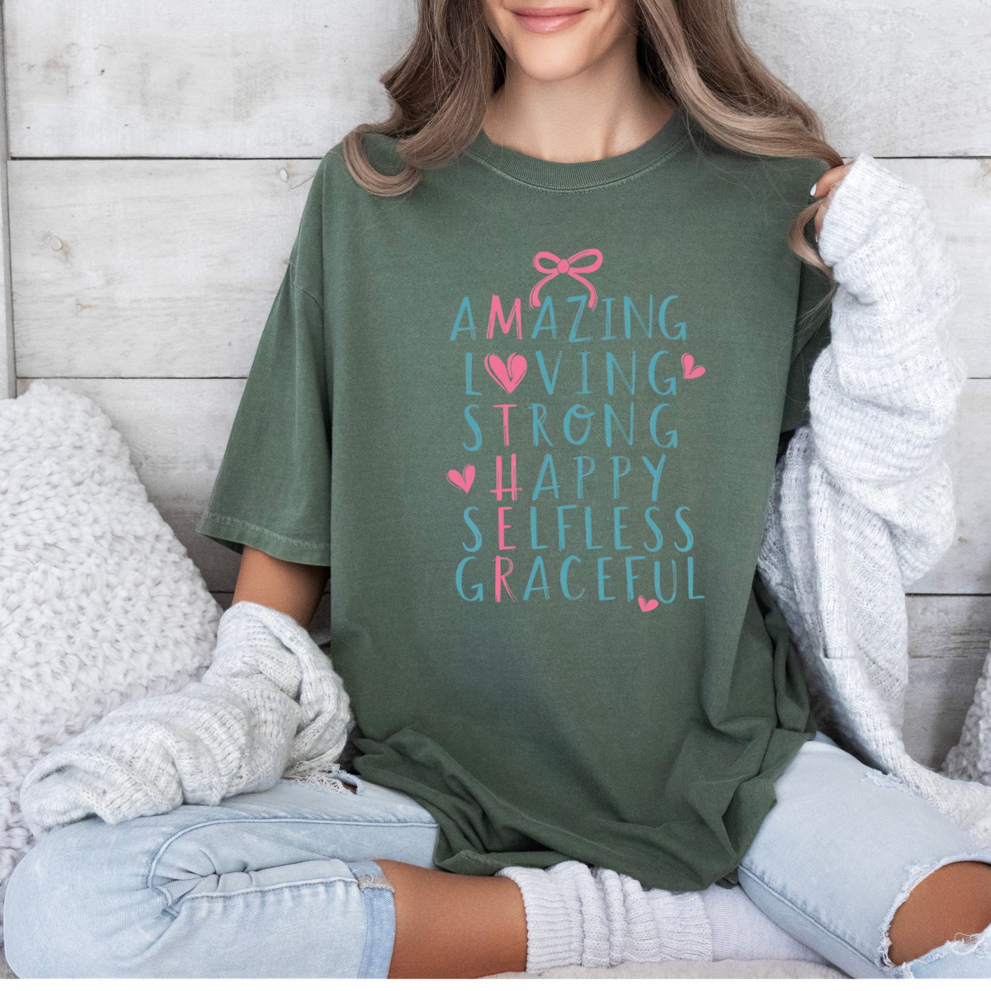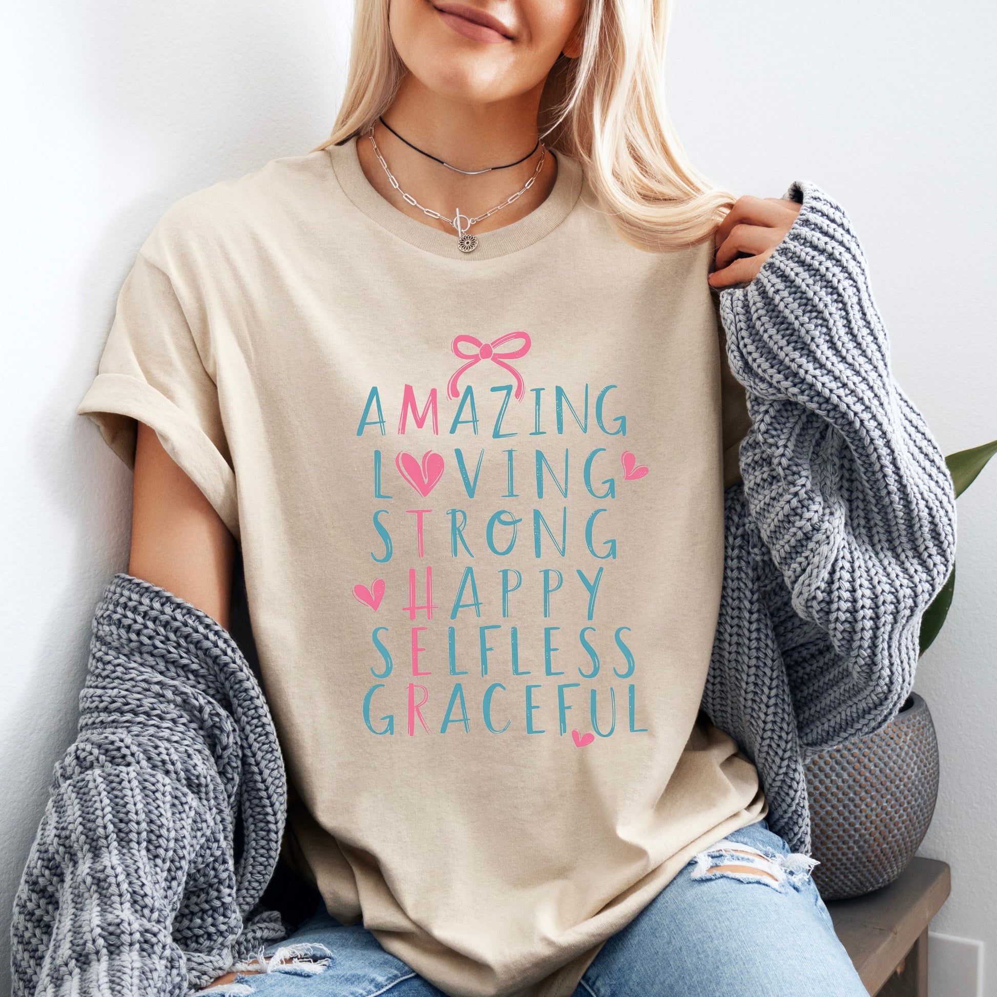 GIGI & Co. t-shirt, crafted from 100% Organic compact Ringspun Cotton for a luxurious feel that's gentle against the skin. Adorned with a delicate screen print transfer design, this t-shirt effortlessly combines fashion and comfort.