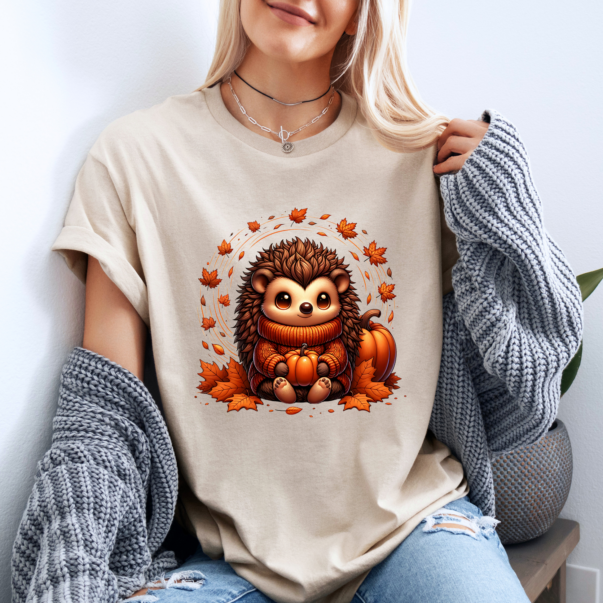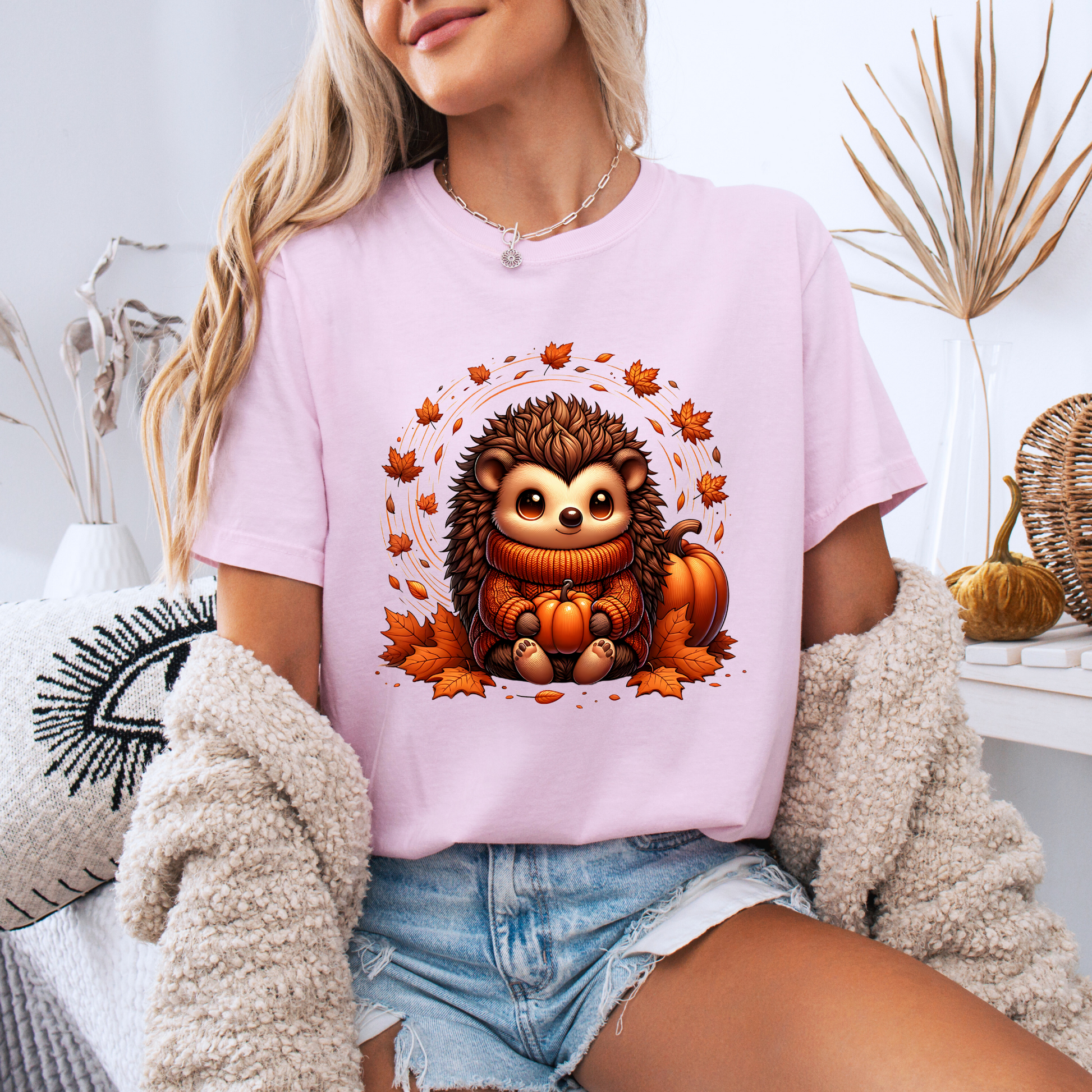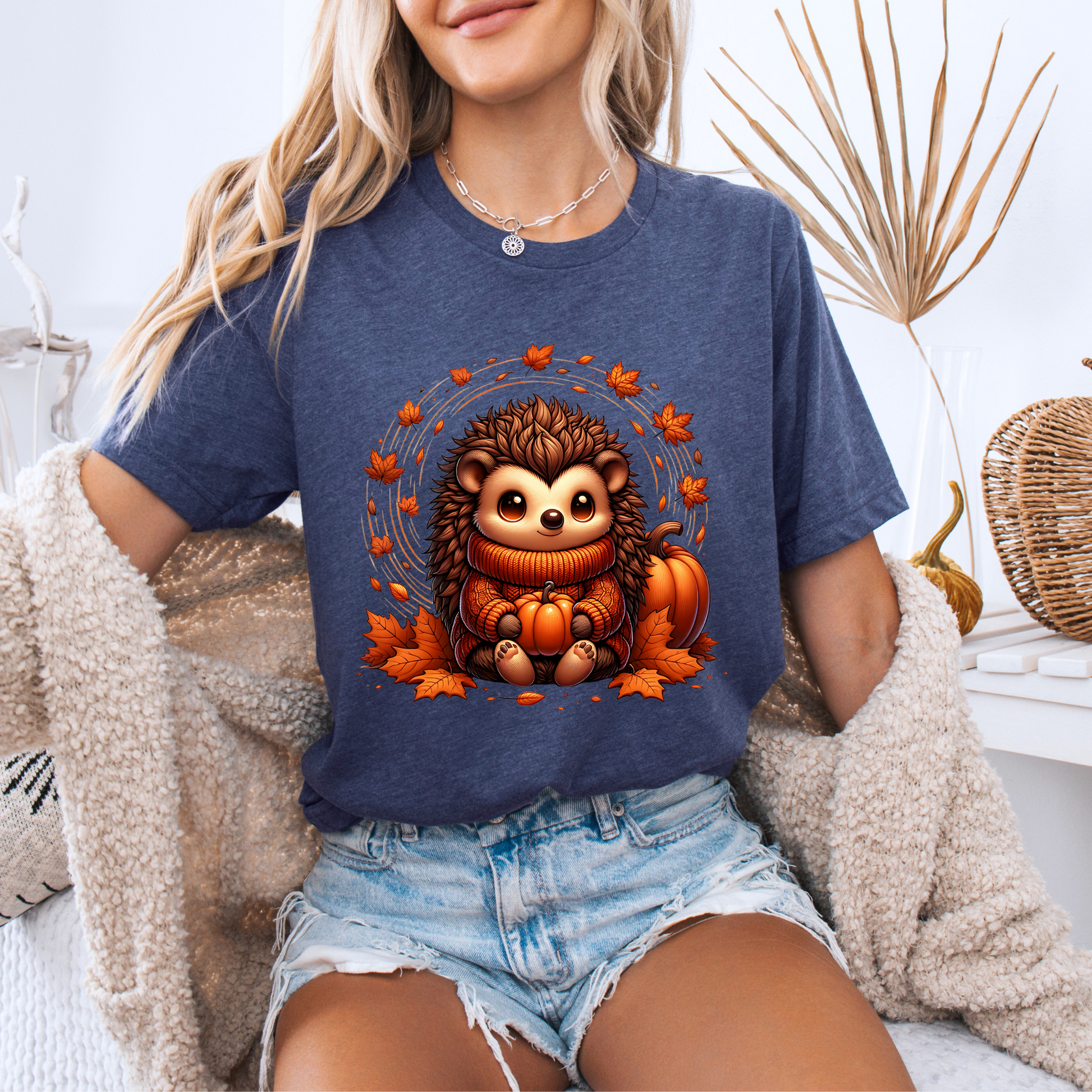 🧡 Autumn Vibes Hedgehog Tee 🍁🎃☕ 100% Organic cotton