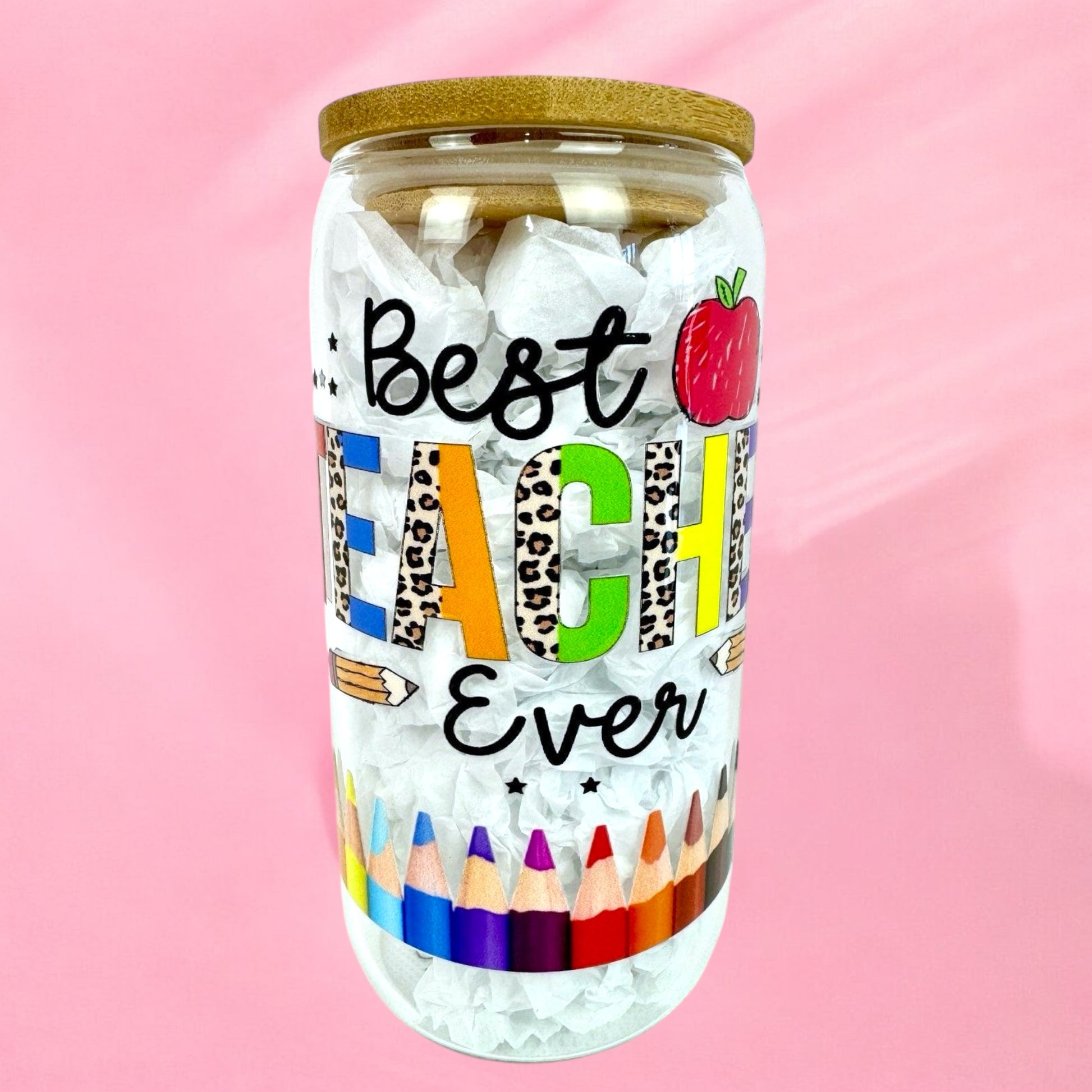 Best Teacher Ever 16oz (455ml) Iced Coffee Glass Cup