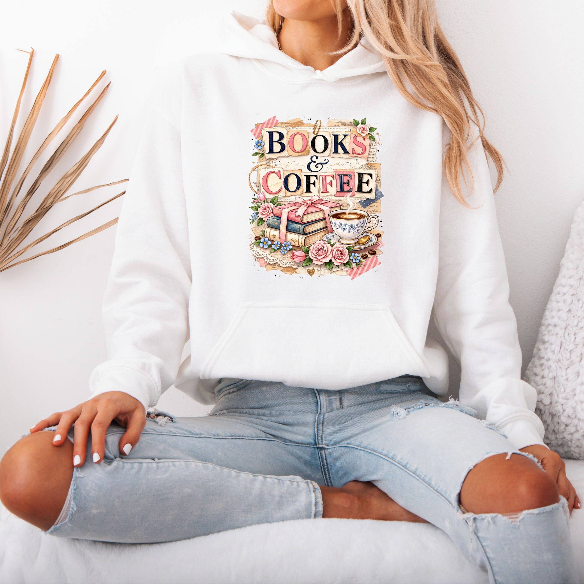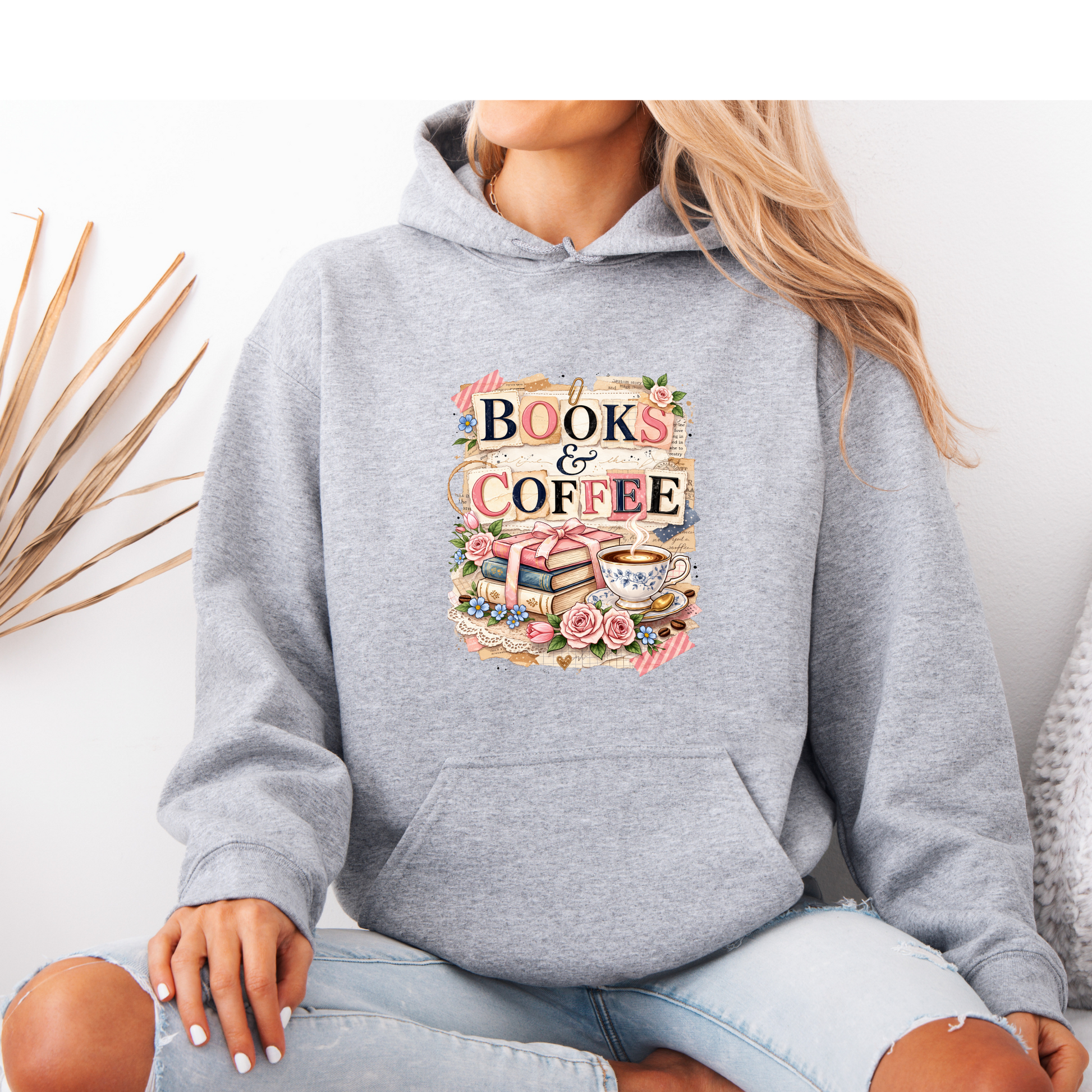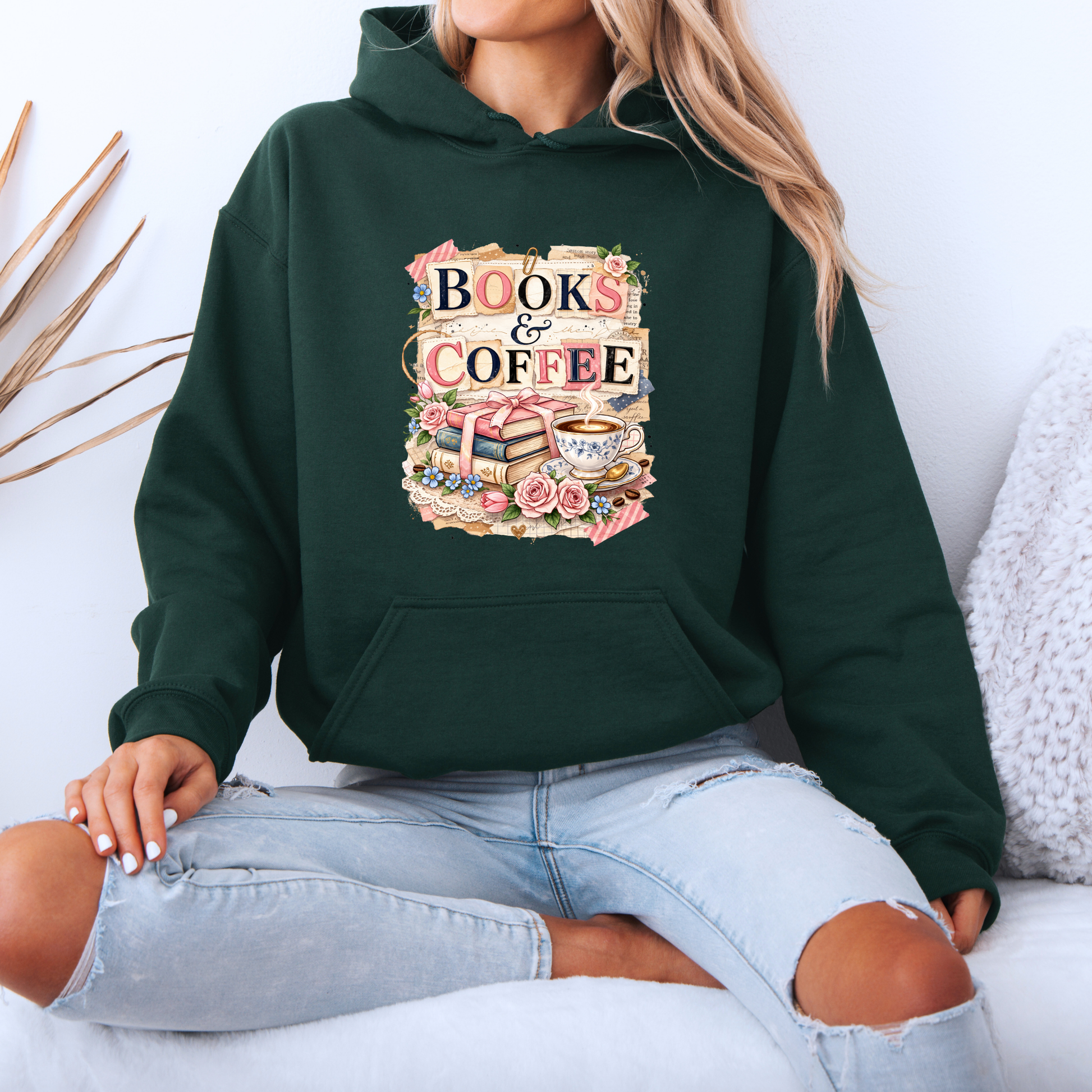 Books & Coffee Vintage Collage Hoodie
