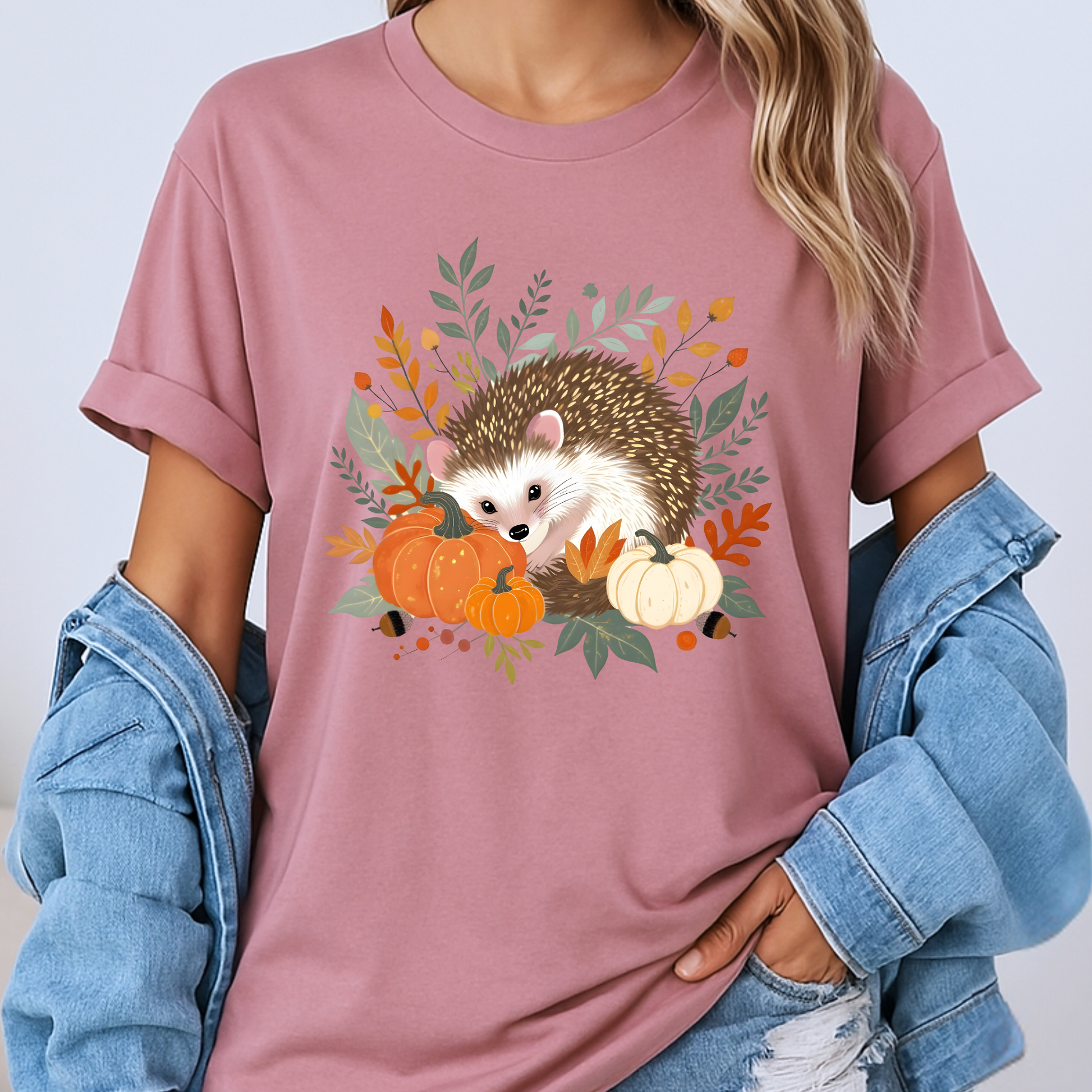 🧡 Cute Hedgehog Fall Vibes T-Shirt 🍁 100% Organic cotton