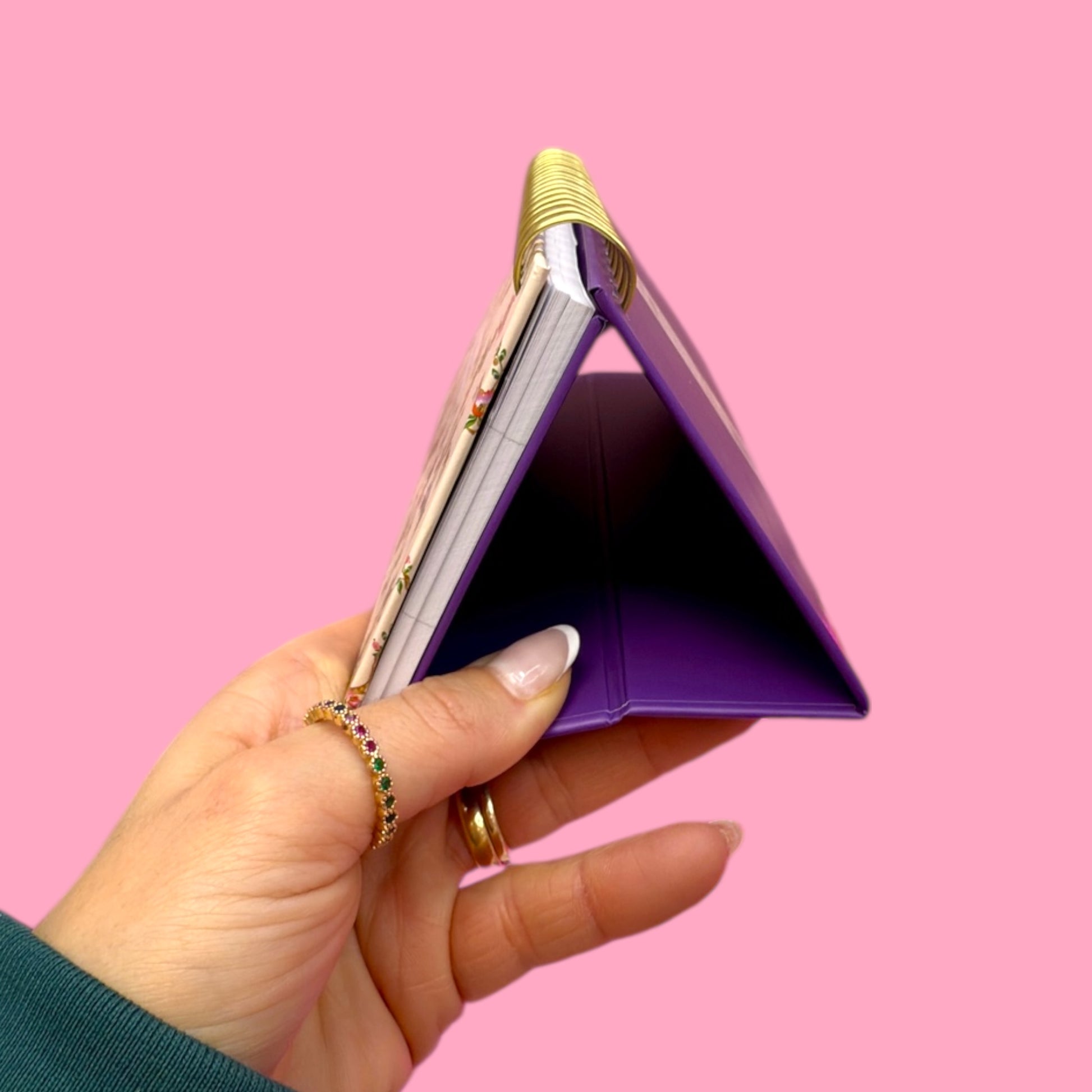 Plan your week in style with this elegant A-frame weekly desk planner 💕 Designed to stand beautifully on your desk, it features a delicate floral and bird print, a sturdy purple base, and a gold spiral binding for a premium finish ✨