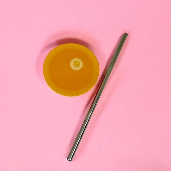 This cup is perfect for your iced coffee, smoothies, or tea, and comes with a vibrant yellow lid and a sleek stainless steel straw for eco-friendly sipping.