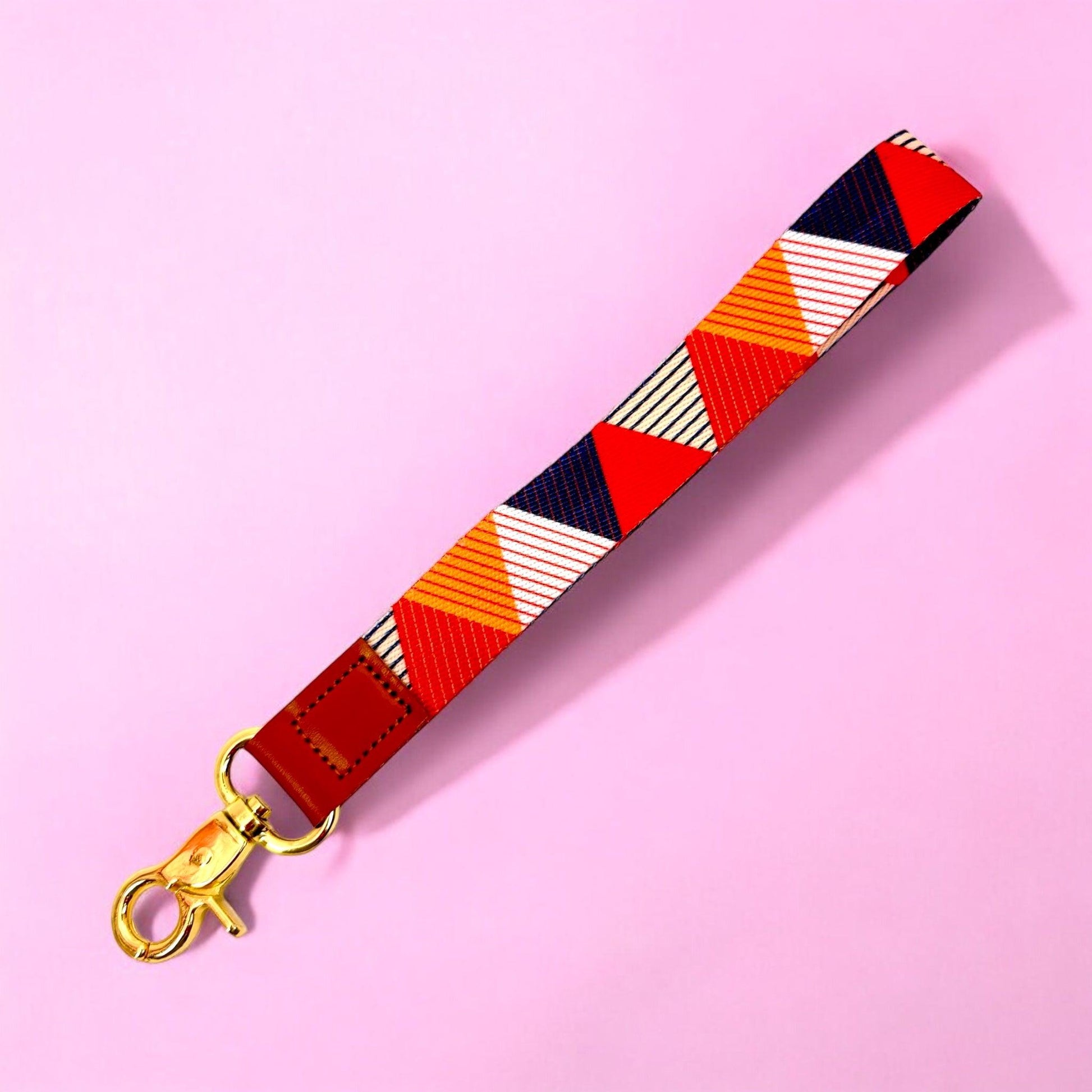 Add a pop of color to your daily essentials with this vibrant geometric patterned wrist lanyard❣️