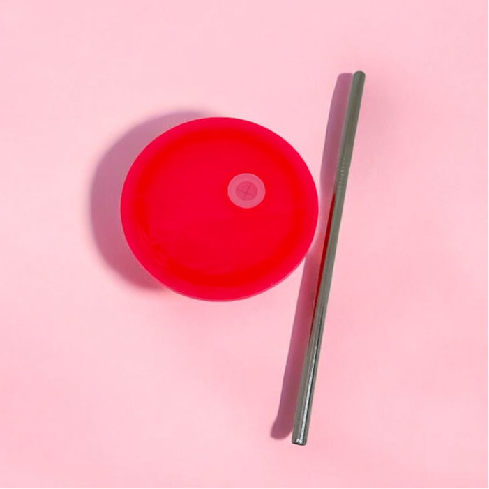 - Hot pink lid + stainless steel straw 💗🥄
