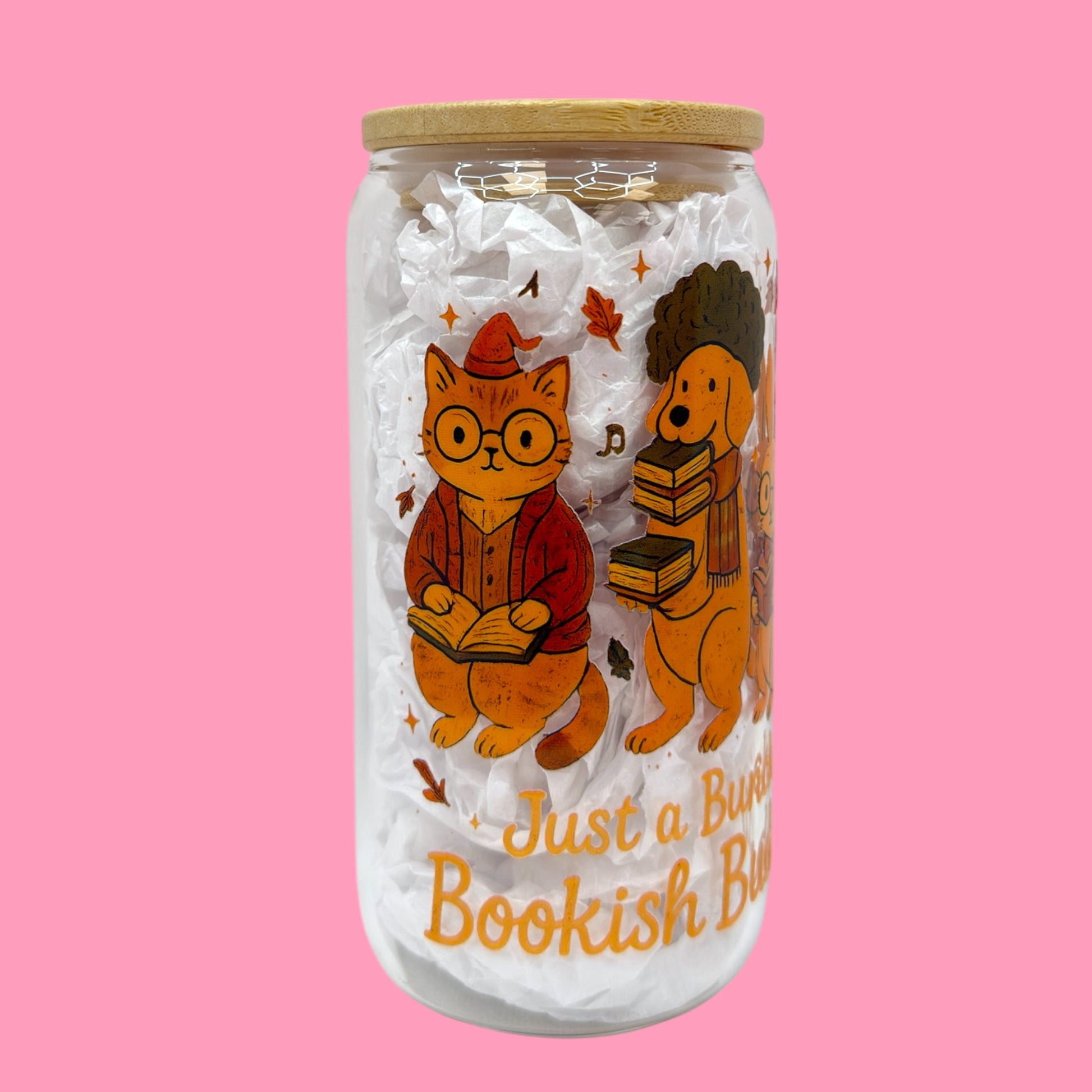 🧡Just a Bunch of Bookish Buddies 16oz Glass Cup 📚