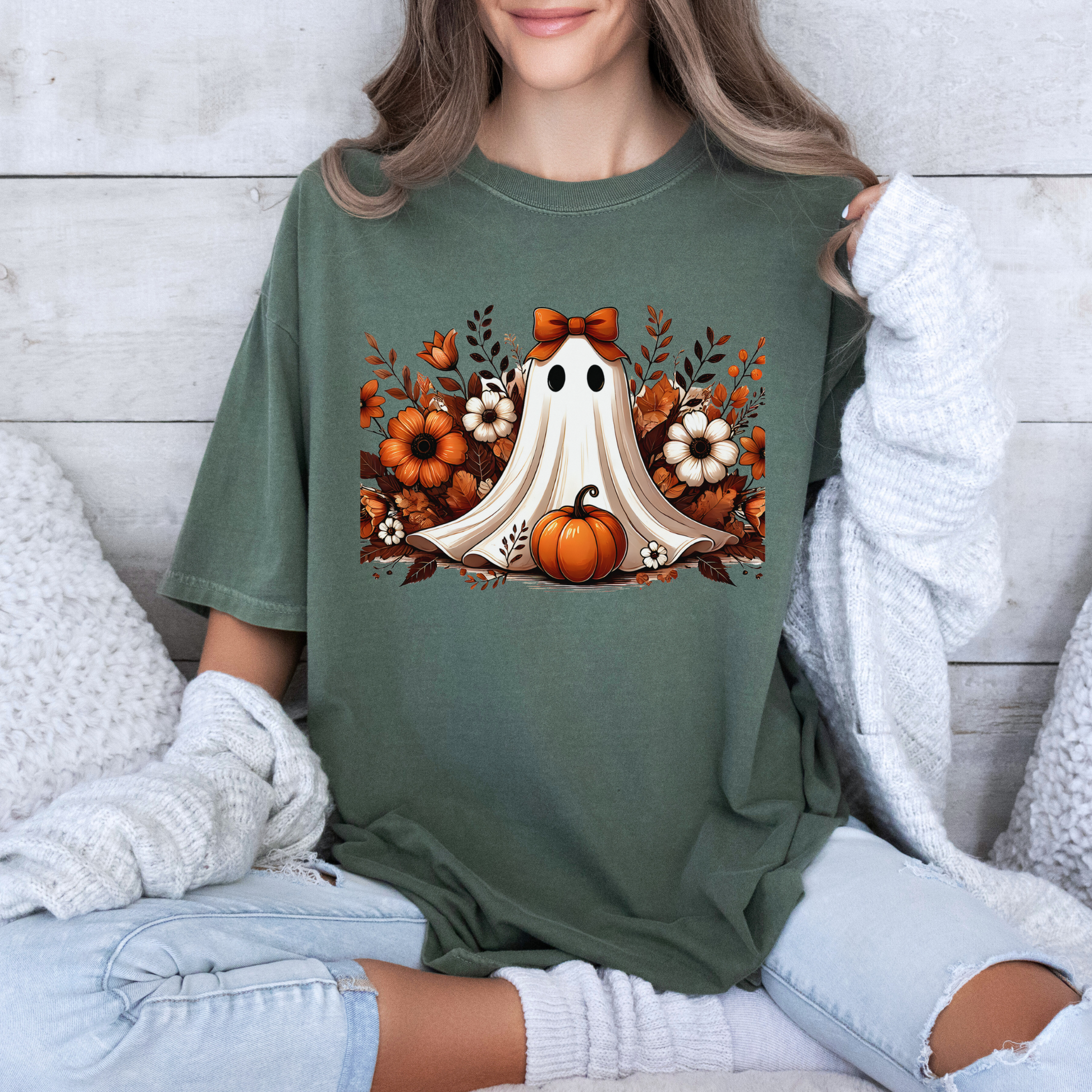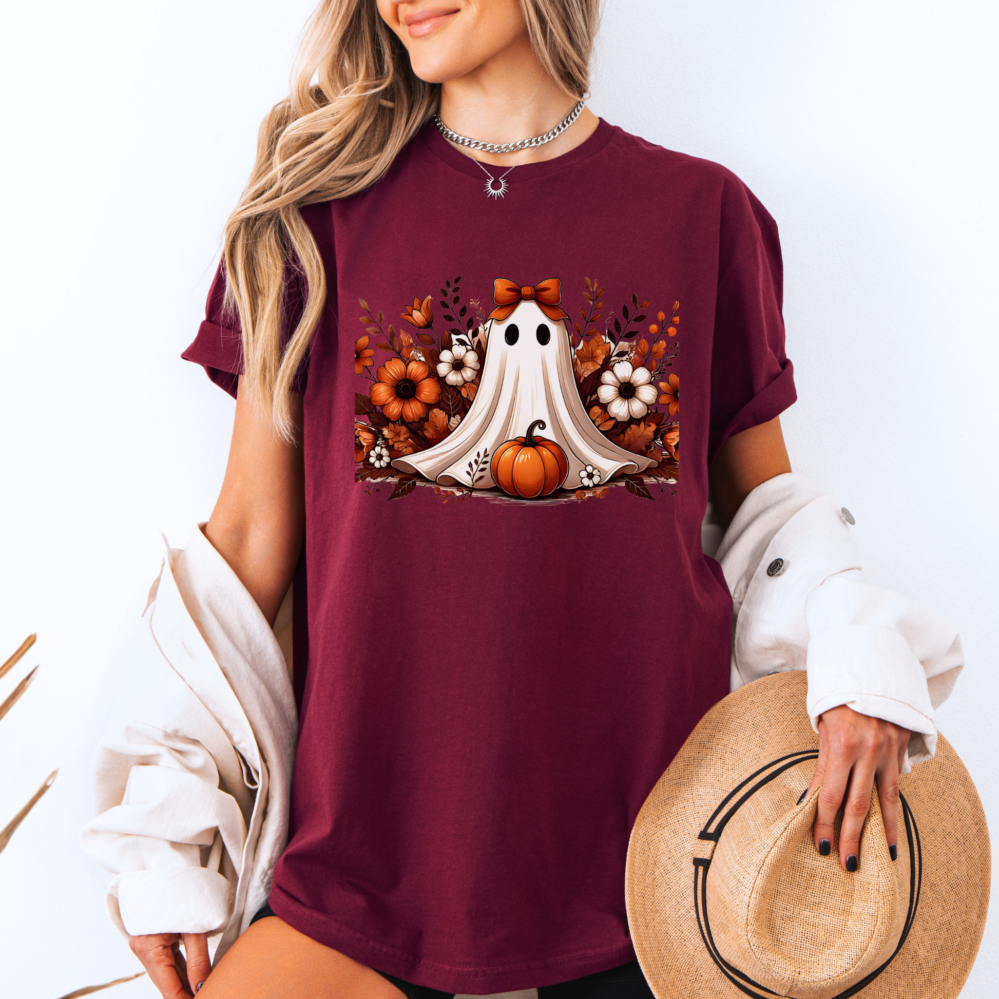 Pumpkin Ghost Bloom - 100% Organic cotton T-shirt