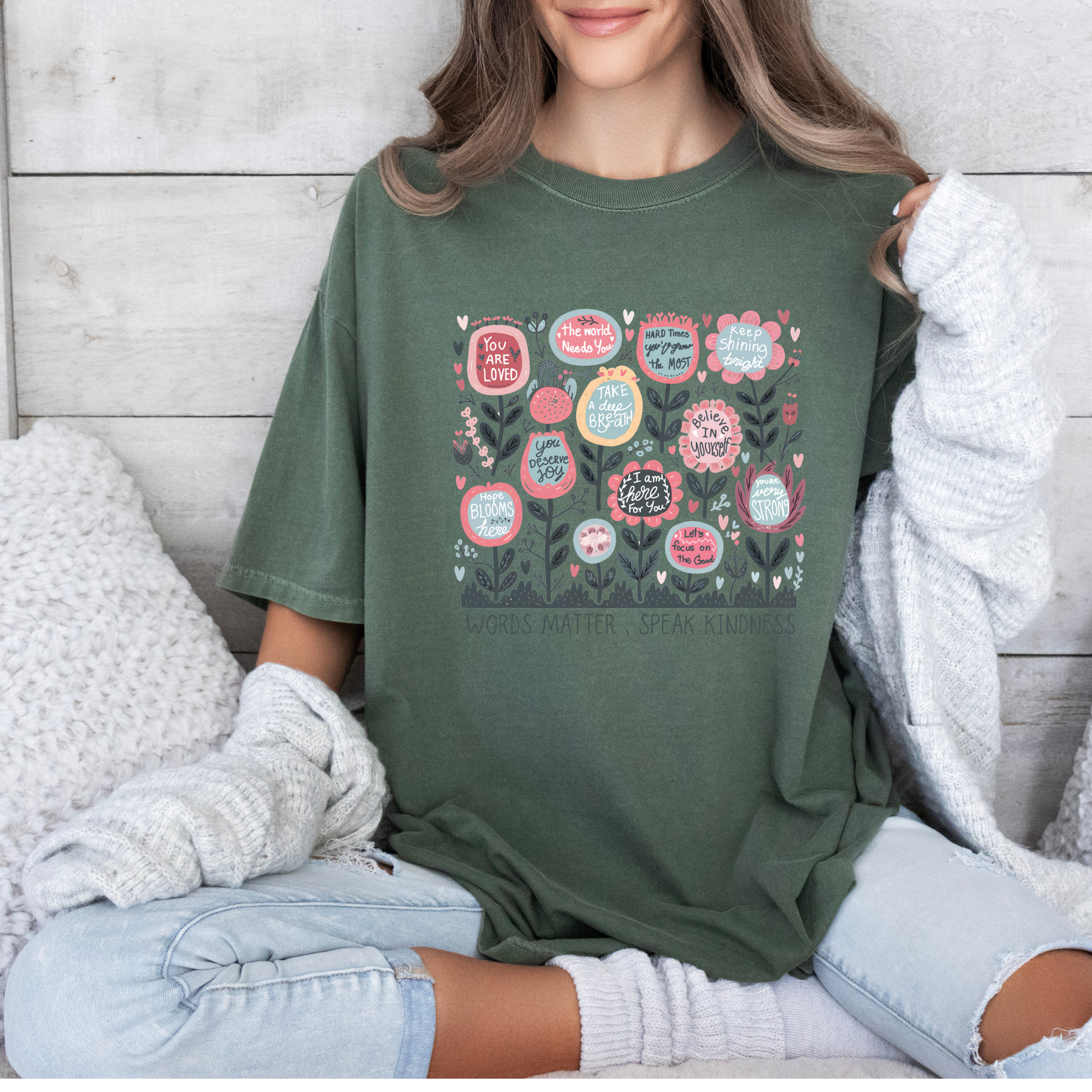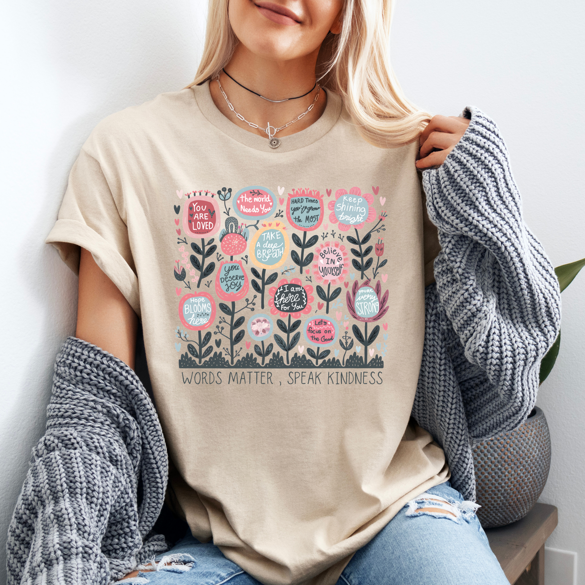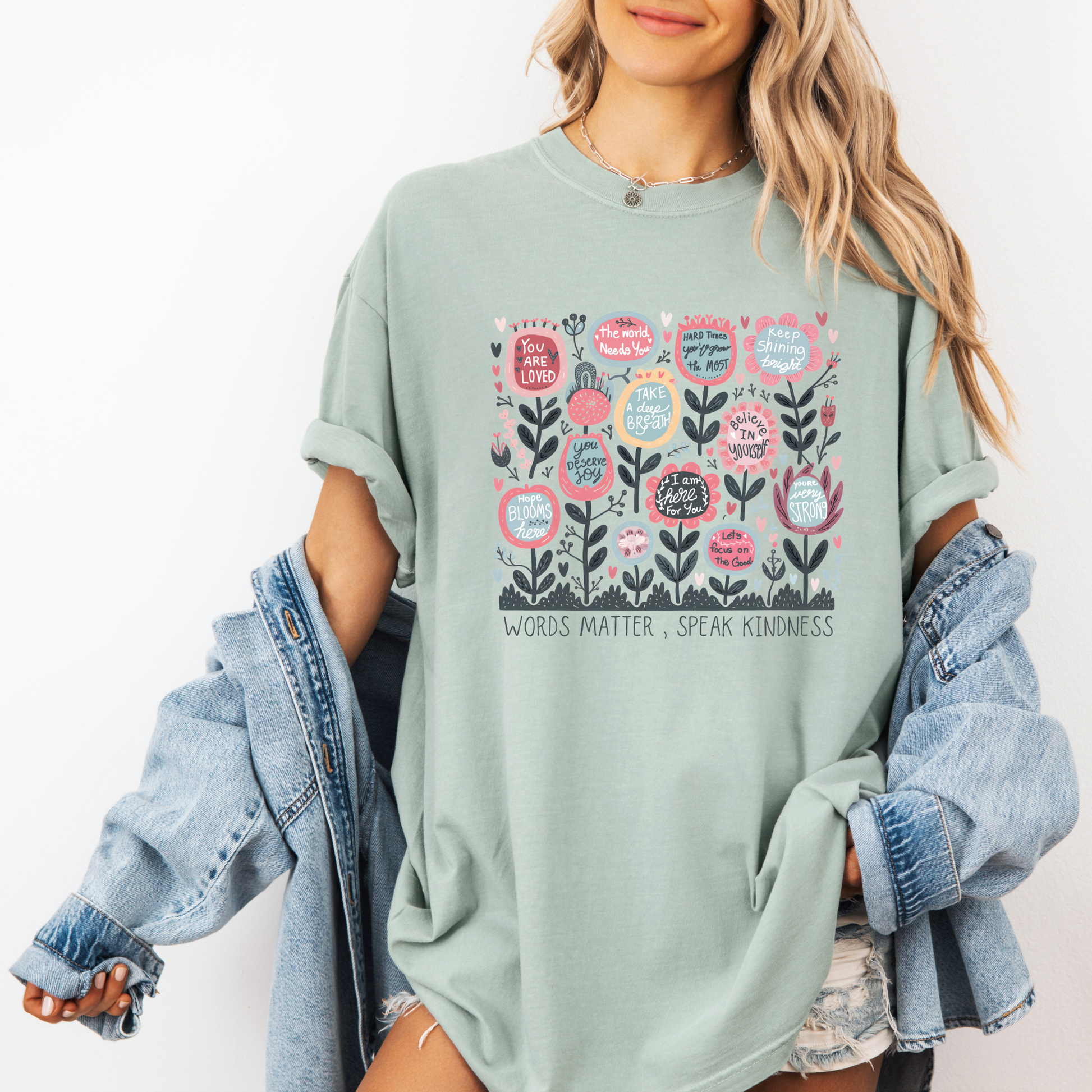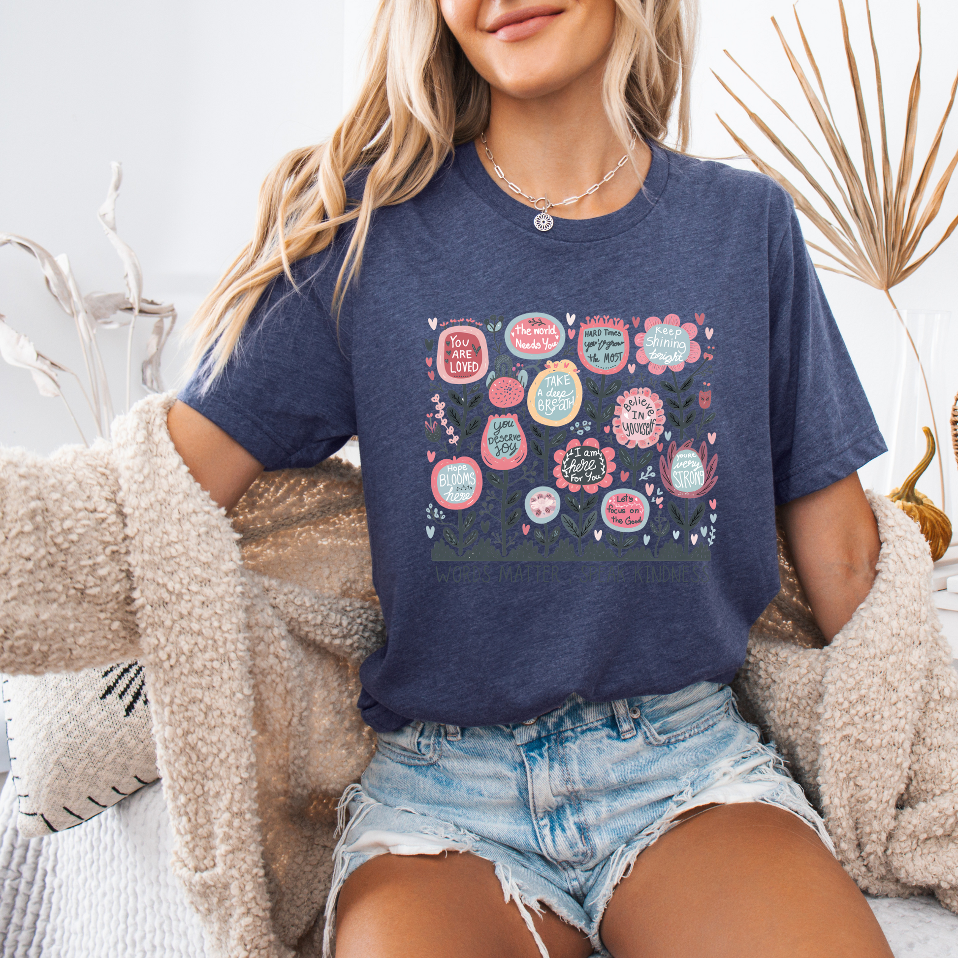 GIGI & Co. t-shirt, crafted from 100% Organic compact Ringspun Cotton for a luxurious feel that's gentle against the skin. Adorned with a delicate screen print transfer design, this t-shirt effortlessly combines fashion and comfort.